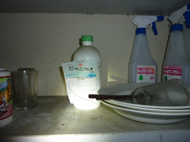 ベンザルコニウム液=逆性石鹸ですね、消毒石鹸なので厨房にあるのは納得です。