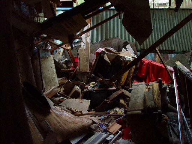 天井も床もボロボロ。