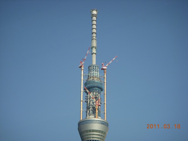 さてスカイツリーですが、予定の高さに達しただけで完成までにはまだまだかかるようですよ、一般公開は来春ですから。