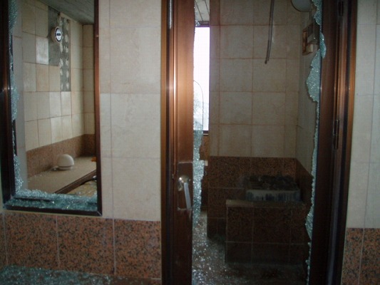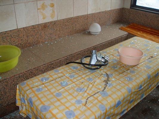 府中の駅前のビルに温泉があるんだけど、着替えるところがガラス張りで外が丸見え。