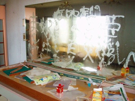 鏡の落書き・・・