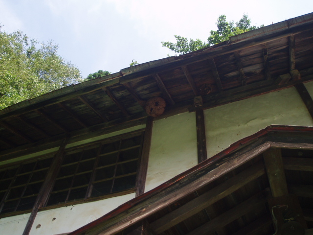 廃墟のお約束のスズメバチの巣・・・