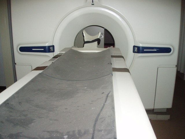 MRIは強力な磁石を内蔵しているので近づくと磁性のあるものは全て吸い寄せられ、一回引っ付くと取れません。