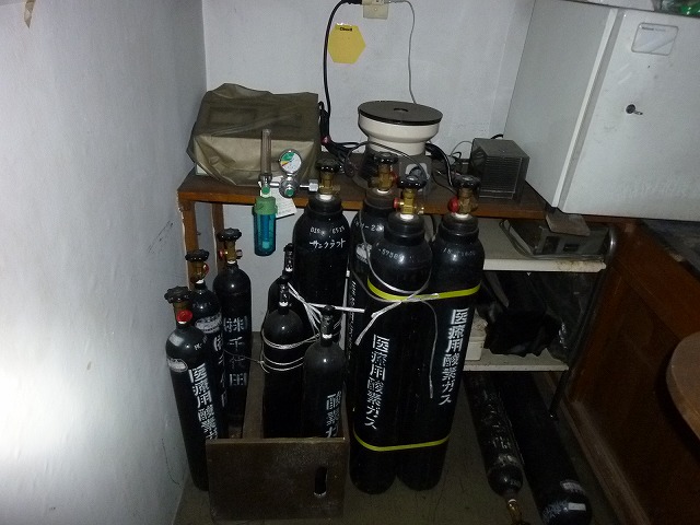 未使用のボンベもあるようですね。大きい方は10リットルボンベかな?