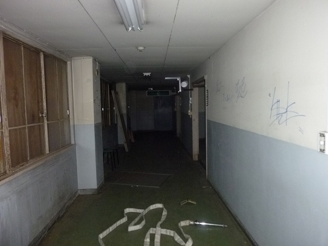 決して泊まりたくない病院廃墟ですが、この物件は泊まれないですね、ベットが無いもの。(泣)