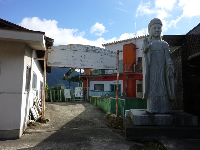 ロープウェイの駅の入口にそば屋の廃墟があった。