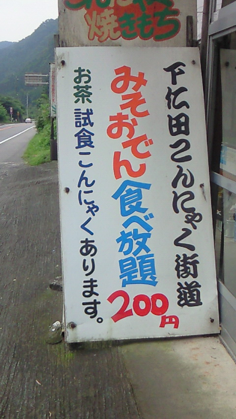 ここは下仁田名物のこんにゃくの味噌おでんが200円で食べ放題なんです!