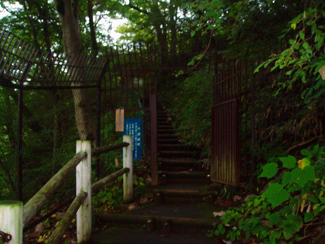 細い坂道を登ると小さな建物にたどり着きました。