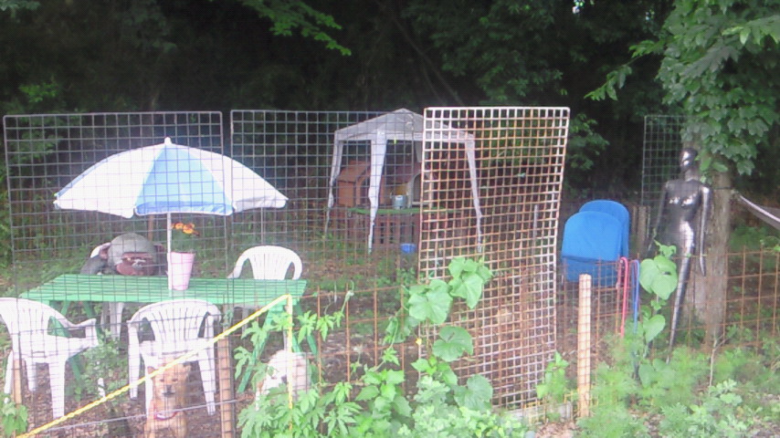 ぬいぐるみやダッチワイフ?宇宙人?が木に寄りかかってます。
