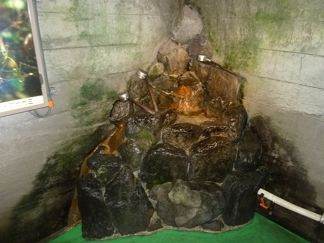 階段の途中で湧水が飲めます。