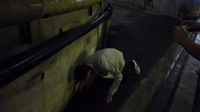 駅へ向かうトンネルの脇に水が流れていました。